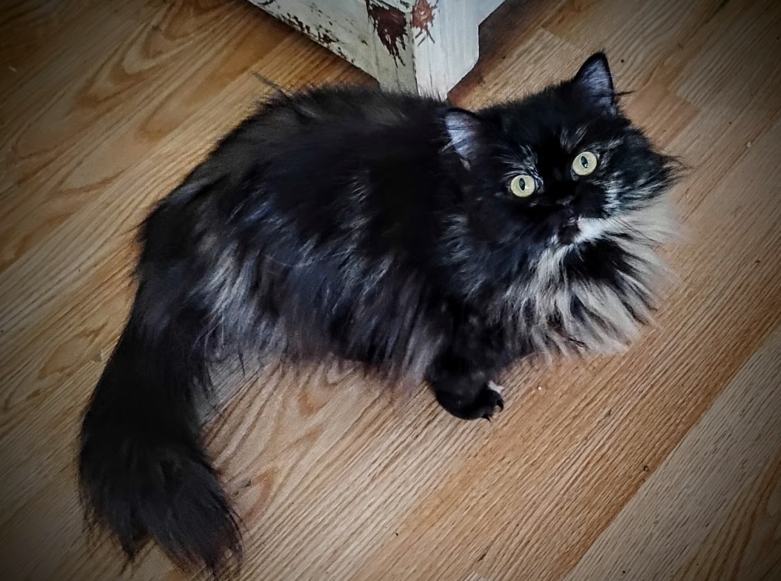 If you are interested in adopting her there is a small rehoming fee to make sure, she gets a good family. Mirabella is an awesome girl and very loving. She purrs a lot when held. Her color is chocolate smoke.
